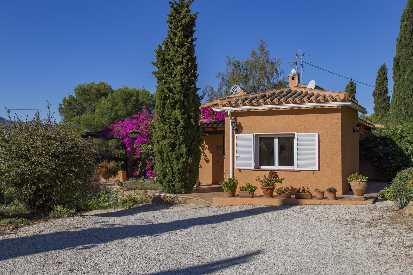 Voor paardenliefhebbers is dit een unieke kans. Het perceel is volledig omheind en biedt alle ruimte voor het houden van paarden of het aanleggen van een eigen equestrian zone. Op slechts 20 kilometer ligt het MET Equestrian Centre, een bekende trekpleister voor paardensport in de regio. Ook golfliefhebbers komen hier aan hun trekken: het bekroonde La Sella Golf Resort met zijn 27-holes baan ligt op slechts vijf minuten wandelen van de woning. Daarnaast bevindt u zich op korte rijafstand van de stranden, winkels en restaurants van Dénia en Jávea, en op wandelafstand van het charmante dorpscentrum van Jesús Pobre.