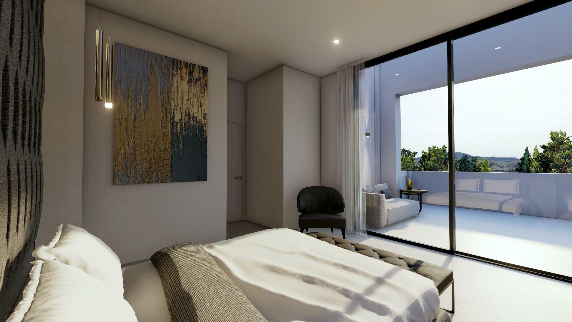 The villa features four generously sized bedrooms, each designed for maximum comfort. The master bedroom boasts an en-suite luxury bathroom and direct access to a private balcony. Here, you can wake up every morning with a sense of peace and elegance while enjoying the panoramic views of the surrounding area.