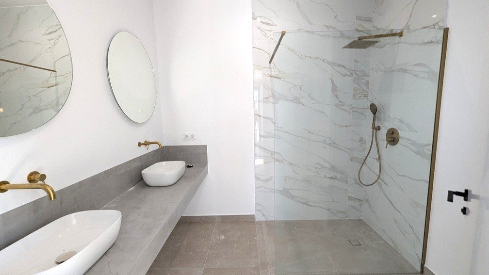 Equally impressive outdoors, the villa features both open and covered terraces, ideal for dining, relaxing or entertaining at any time of year. The 35 m² private pool is the centrepiece of the fully fenced garden, offering a safe and tranquil space for relaxation. Whether soaking up the sun or enjoying dinner under the stars, the outdoor areas are designed for Mediterranean living at its best.